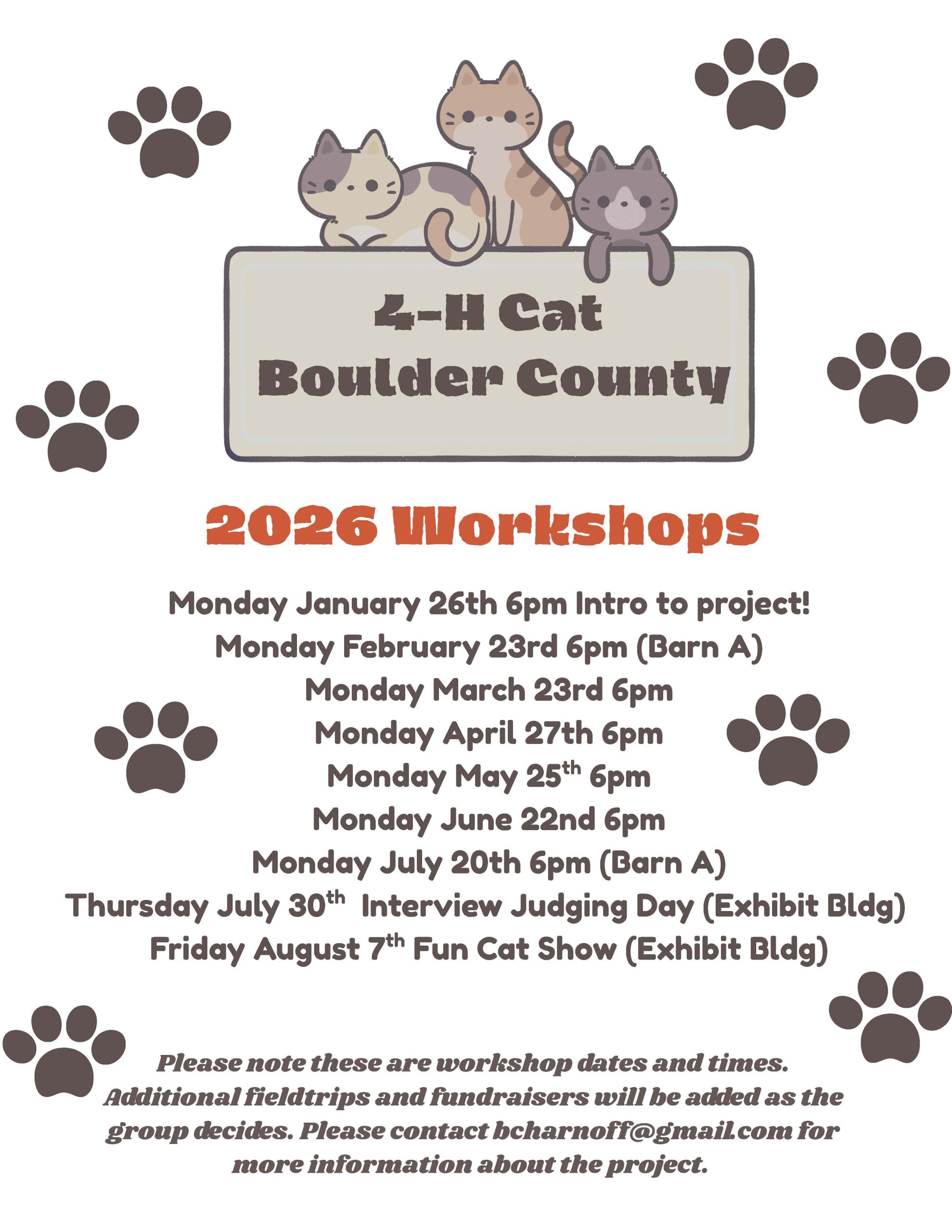 All Cat exhibits at the Boulder County Fair will consist of the following: