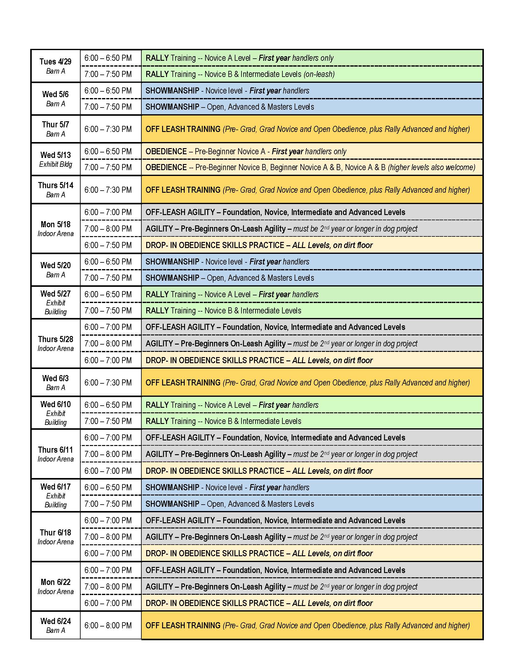 Use these guides to determine which level of training you should compete and train in obedience, showmanship, or rally.